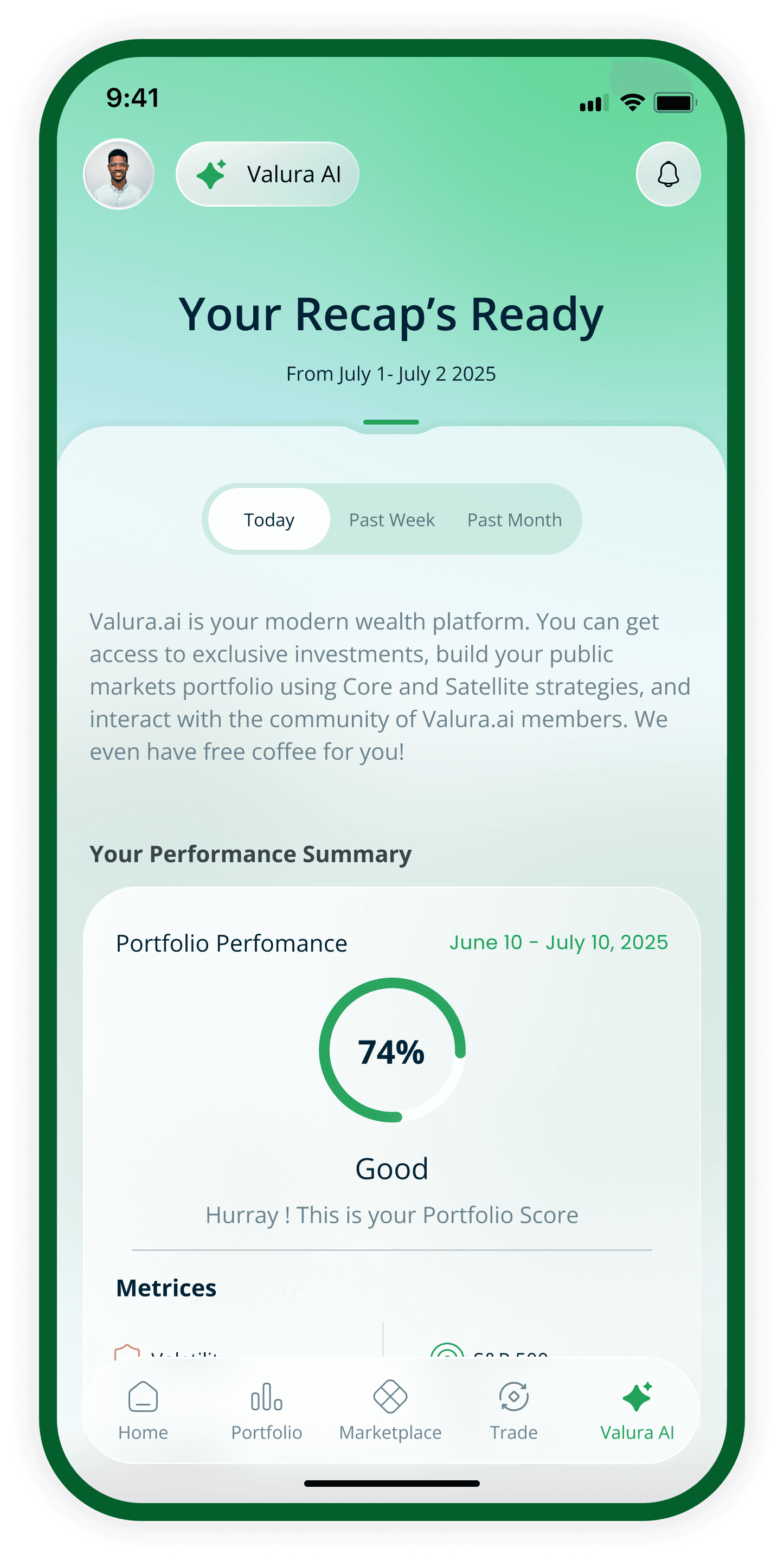 Valura’s proprietary engine that tracks your investing habits, nudges you to stay on course, and rewards you for building a healthier portfolio.