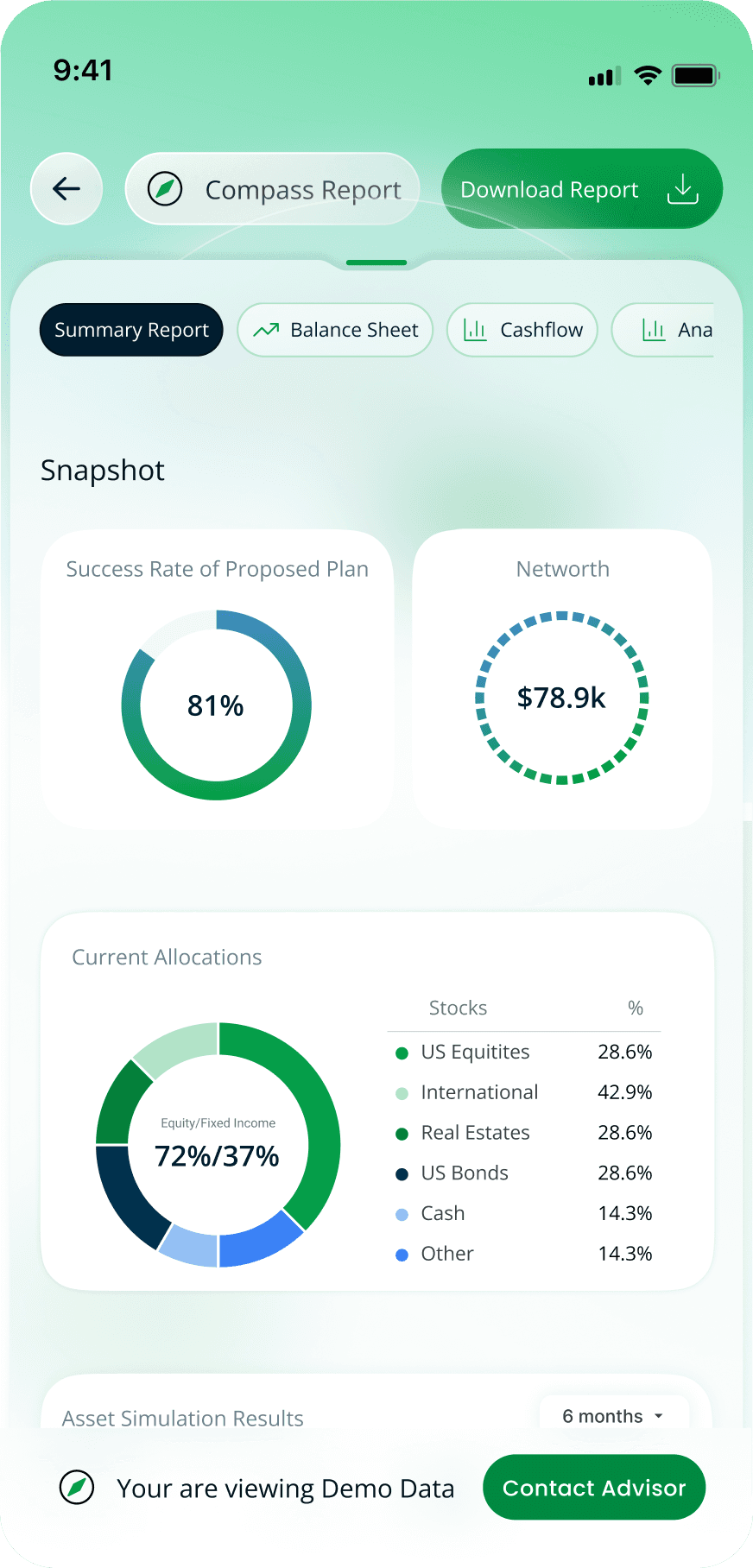 Compass turns your goals into actionable plans, backed by smart financial analysis, personalized advice, and guidance that grows with you.